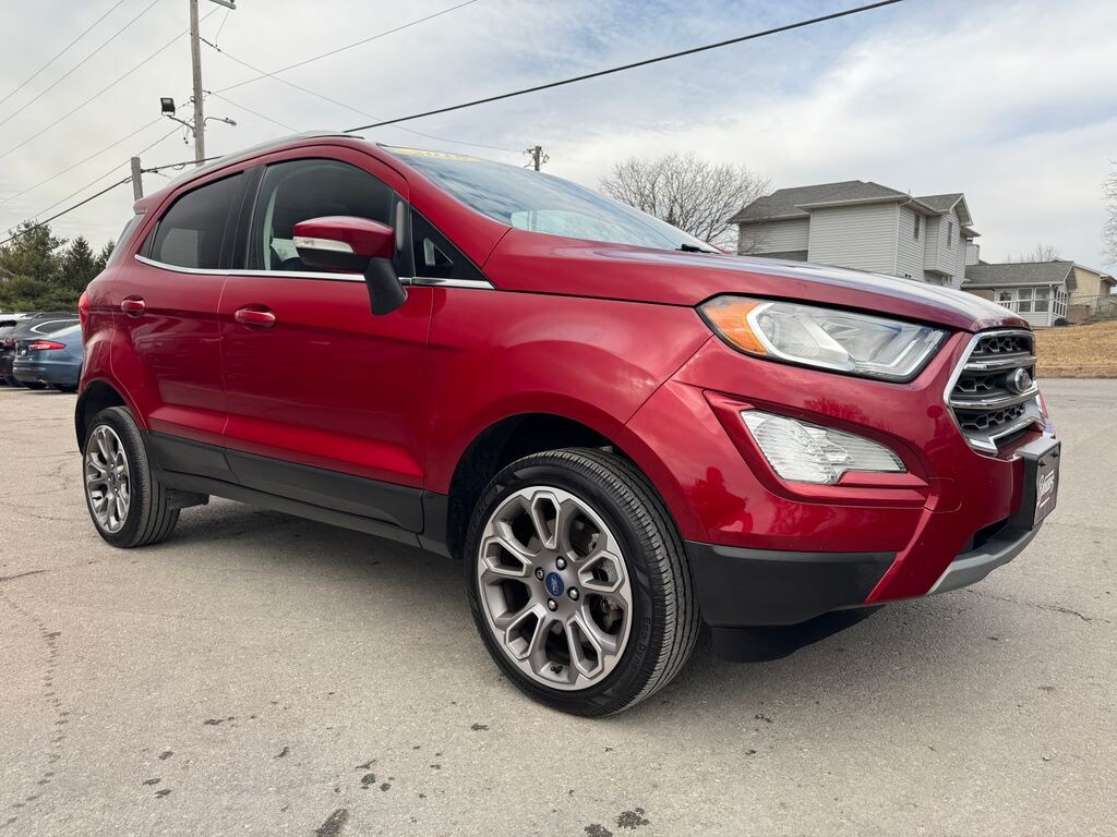 LOCAL TRADE. This EcoSport Titanium 4WD is well equipped with desirable options that add comfort, convenience, and all-weather confidence. The 2.0L engine delivers smooth everyday power, while four-wheel drive helps when road conditions change. With the Cold Weather Package and exterior keypad entry, its especially well suited for colder climates and easy day-to-day access, all wrapped in the upgraded Titanium trim.